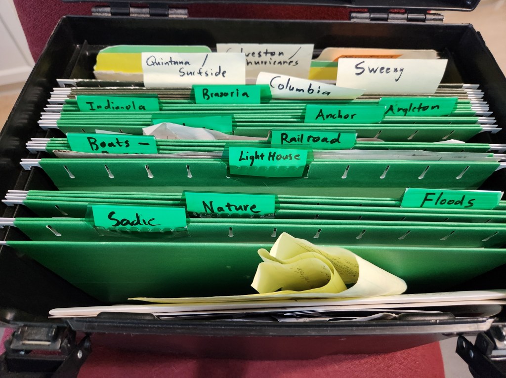 Author’s note: I do not use AI. Special thanks to the Brazoria County Historical Museum archives, Munson Historical County Park, and the Texas Writers League. Below you can see my many years-long drafting process. Whew!